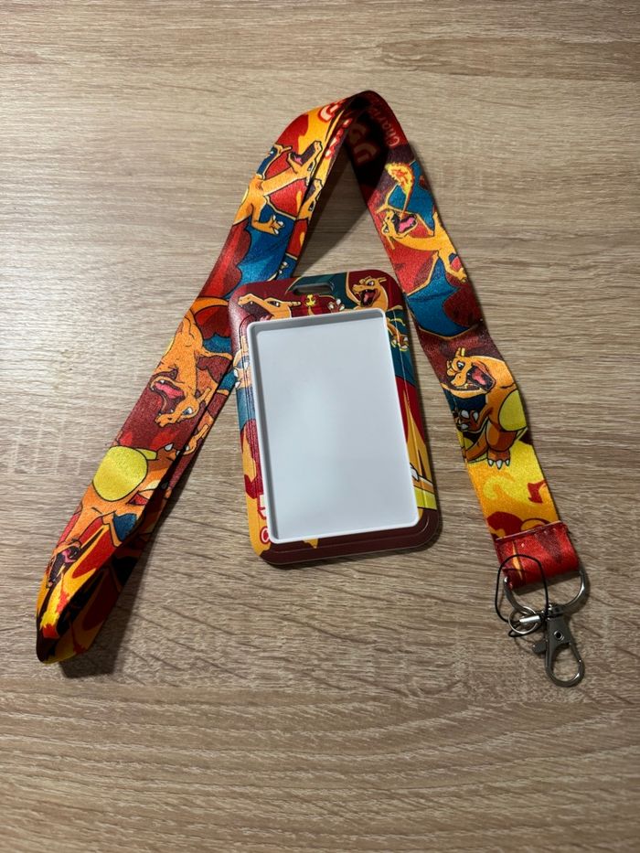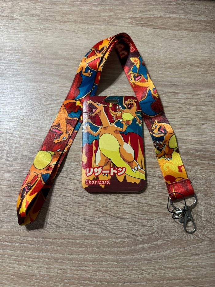 lanière (tour de cou) et porte carte Pokémon dracaufeu idéal pour les billets ou pass annuel, carte de bus, badge de travail lanière, porte carte, porte clé, pin trading