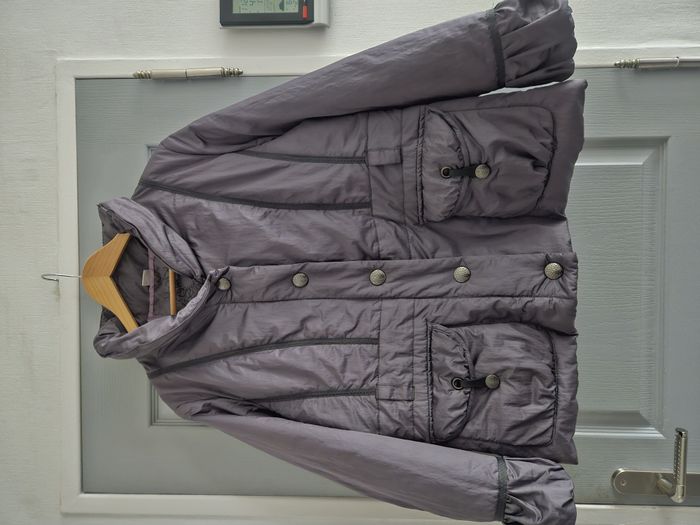 Manteau doudoune Coupe femme Idéal pour l'hiver Bien chaude Coloris gris / violet Fermeture par boutons + fermeture éclair 2 poches avant 1 poche intérieure Marque : M&S Composition : 58% nylon, 42% polyester. Doublure : 100% polyester Taille : XL / 42. Mesures sur demande Etat : Très bon état Envoi ou remise en main propre #manteaufemmehiver #doudounefemmehiver #tailleXL #M&S #taille42