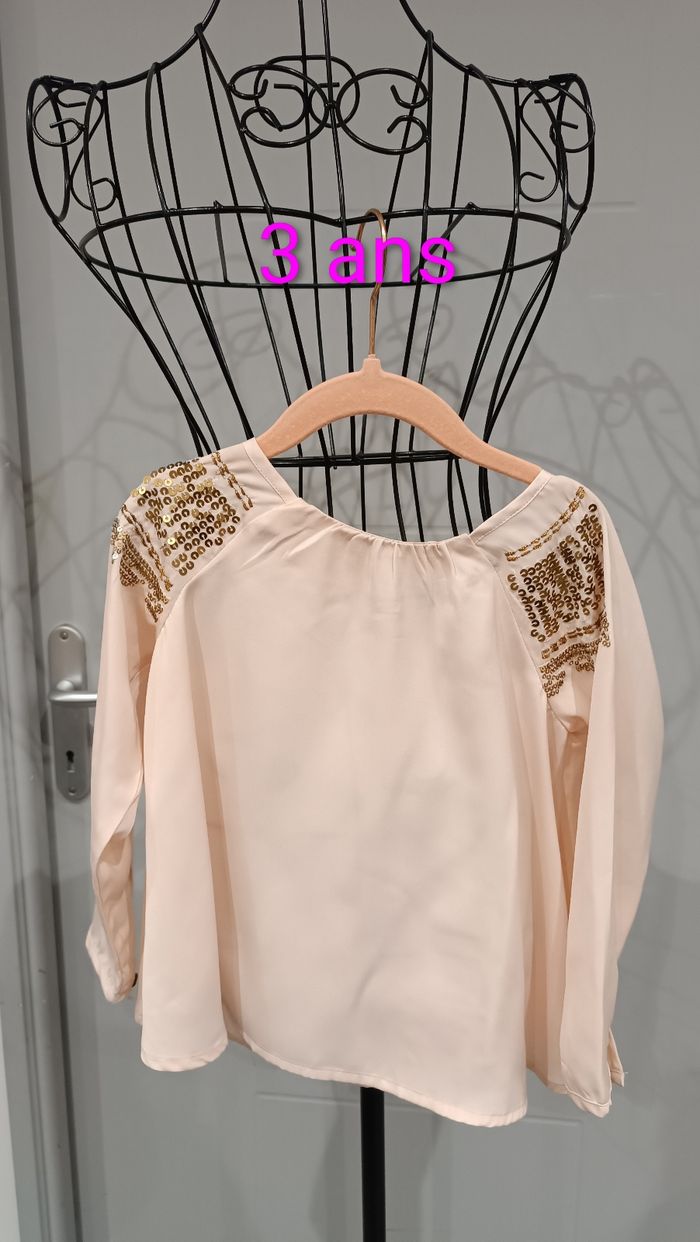 Blouse rose clair et or, taille 3 ans, de marque Tape à l'oeil, très bon état. Possibilité de faire des lots