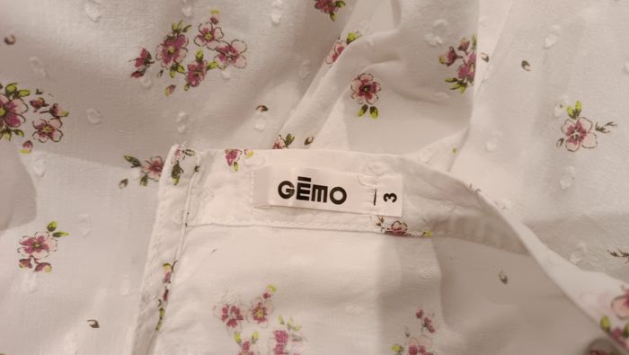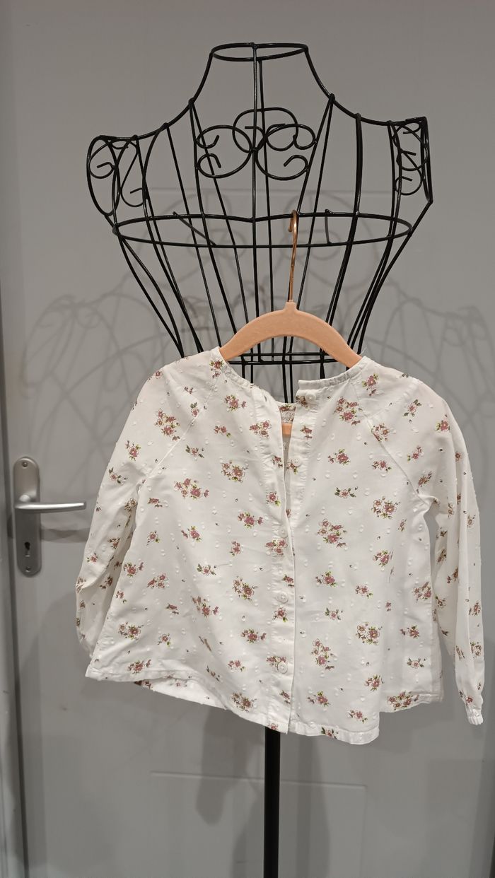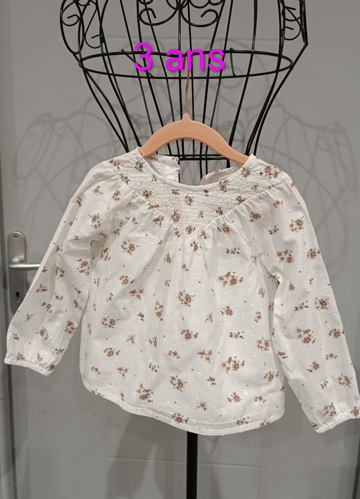 Blouse blanche à fleurs, taille 3 ans, de marque Gémo, très bon état. Possibilité de faire des lots