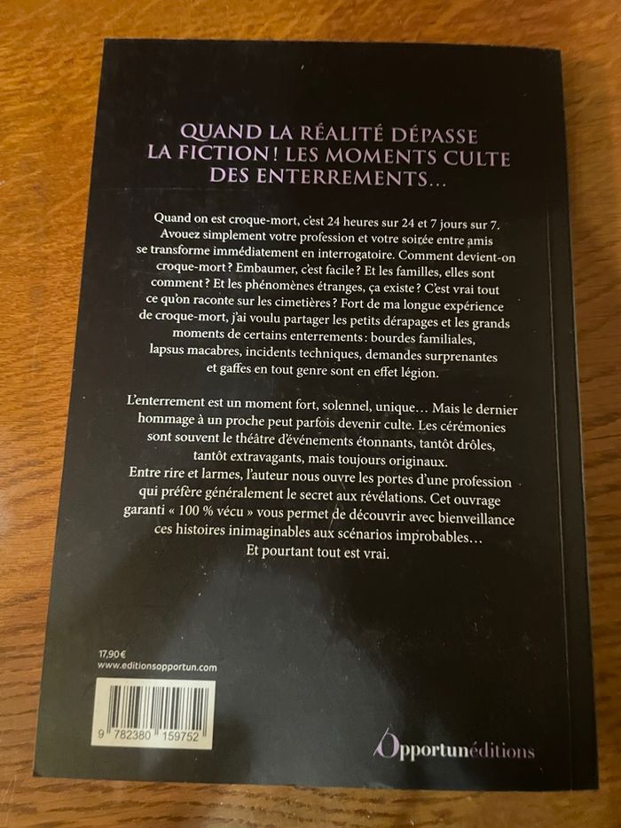 Je vends ce roman "Mes sincères condoléances" de l'auteur Guillaume Bailly, édition collector. - Titre : Mes sincères condoléances - Auteur : Guillaume Bailly - Genre : Roman - Édition : Édition collector Très bon état N'hésitez pas à me contacter pour plus d'informations ! #cerceuil #humournoir #enterrement #pompefunebre #thanatos #thanatopracteur