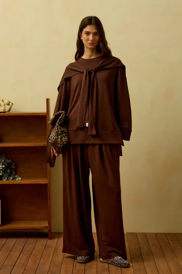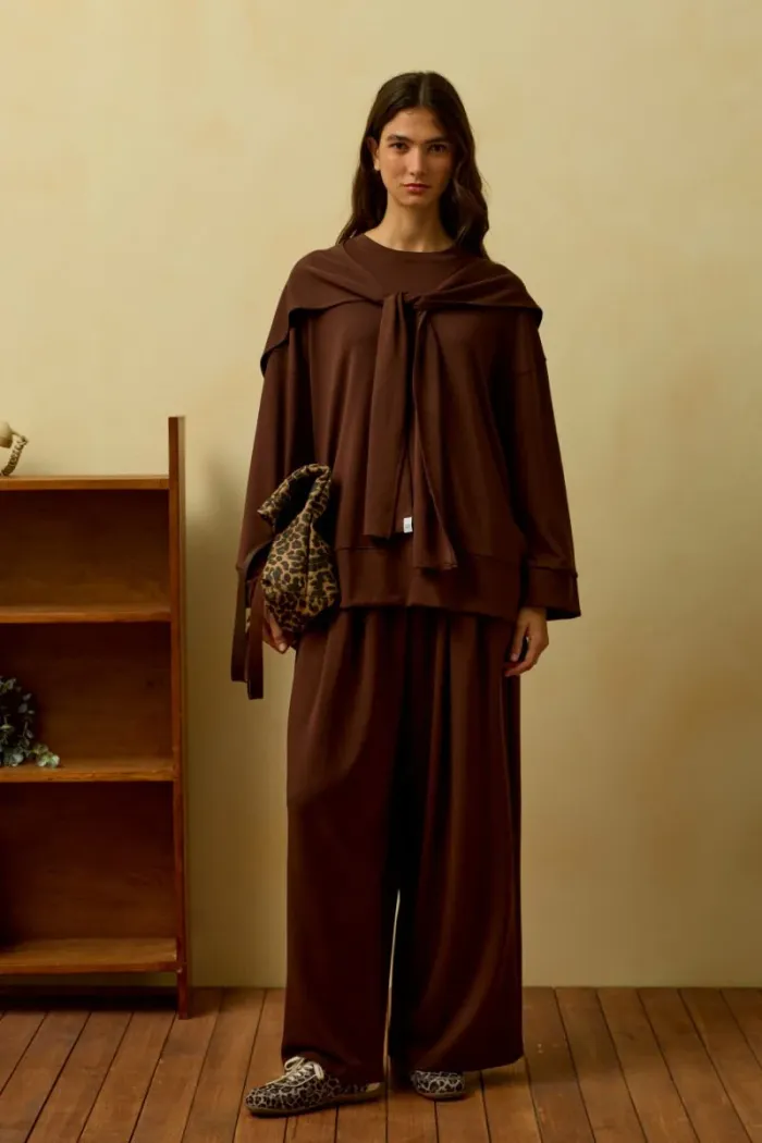 L’ensemble Oysho allie confort et élégance. Son tissu doux et ses détails à nouer épousent parfaitement la silhouette et offrent un maintien agréable tout au long de la journée. fabriquée en Turquie 🇹🇷 Polyvalent, il est idéal aussi bien pour la maison que pour les sorties, grâce à son design moderne et raffiné. Un indispensable à ajouter à votre garde-robe. Coupe décontractée et confortable Composition de l’ensemble : • 1 haut à nouer Longueur devant : 69 cm• Longueur dos : 73 cm Longueur des manches : 67 cm (manches tombantes) Tour de poitrine : 64 cm • 1 pantalon assorti Tour de taille : 35 cm (avec élasticité, extensible) Longueur : 100 cm Tour de hanches : 56 cm Tissu : • 85 % coton • 15 % polyester