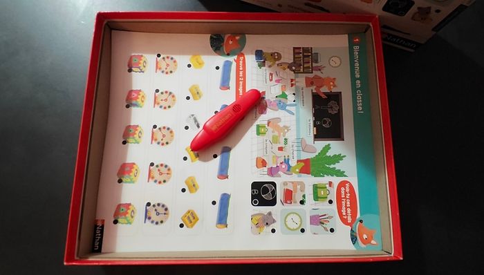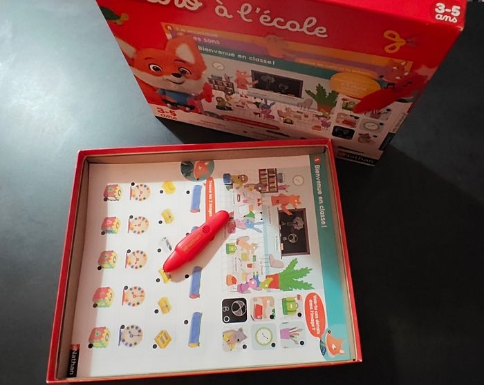 Jeu éducatif Nathan – Électro à l’école, pour enfants 3 à 5 ans . ✔ Jeu de questions-réponses avec stylo sonore et lumineux ✔ Développe l’observation, la logique et le vocabulaire ✔ Utilisé en maternelle ✔ Complet (planches + stylo, voir photos) ✔ Très bon état Fonctionne parfaitement. Réduction automatique en cas d’achat de plusieurs jeux.