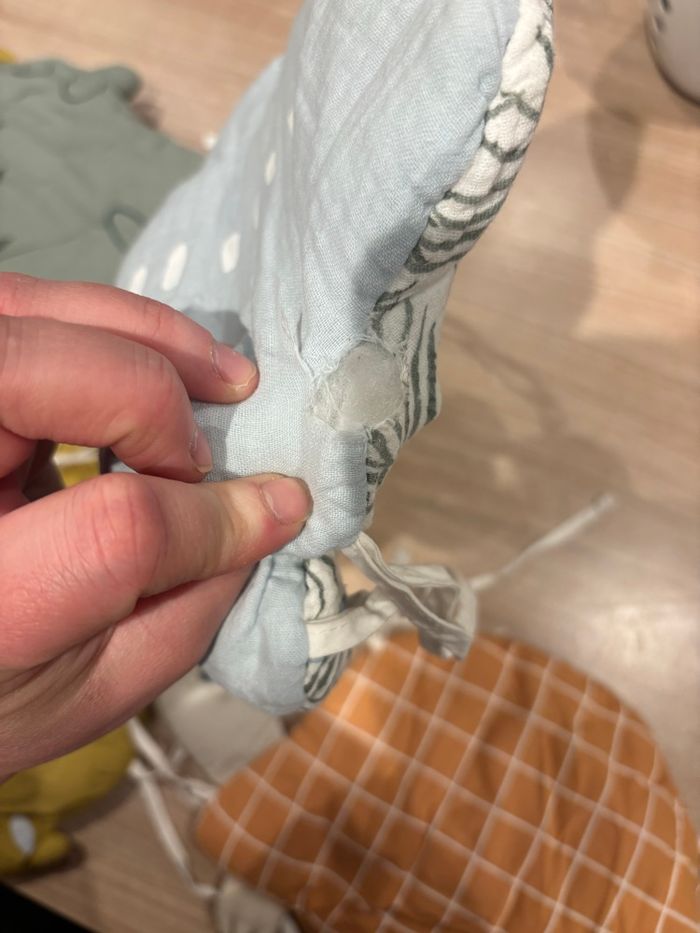 1 coussin décousu mais n’empêche pas l’utilisation. Celui ci peut être recousu