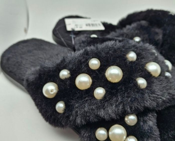 Chausson Fausse Fourrure Chaude en perles Noir Neuve avec étiquettes 🏷 Jamais porté Taille 40 / 41 Prix d'achat 19,99 € Chaussure claquettes tong confortable chausson d'intérieur ou extérieur selon les événement Cadeau 🎁 Anniversaire 🎂 Noël Ou pour soi Même 😍