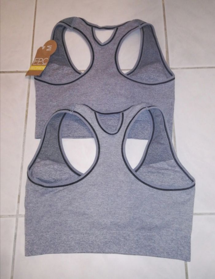 Lot 2 brassières de sport grises, taille M, neuves avec étiquette. - photo numéro 2