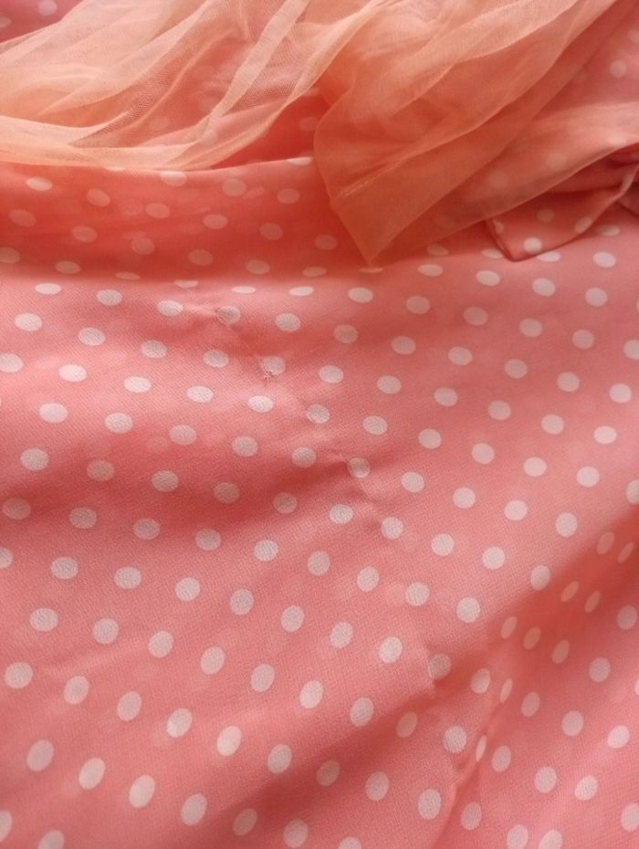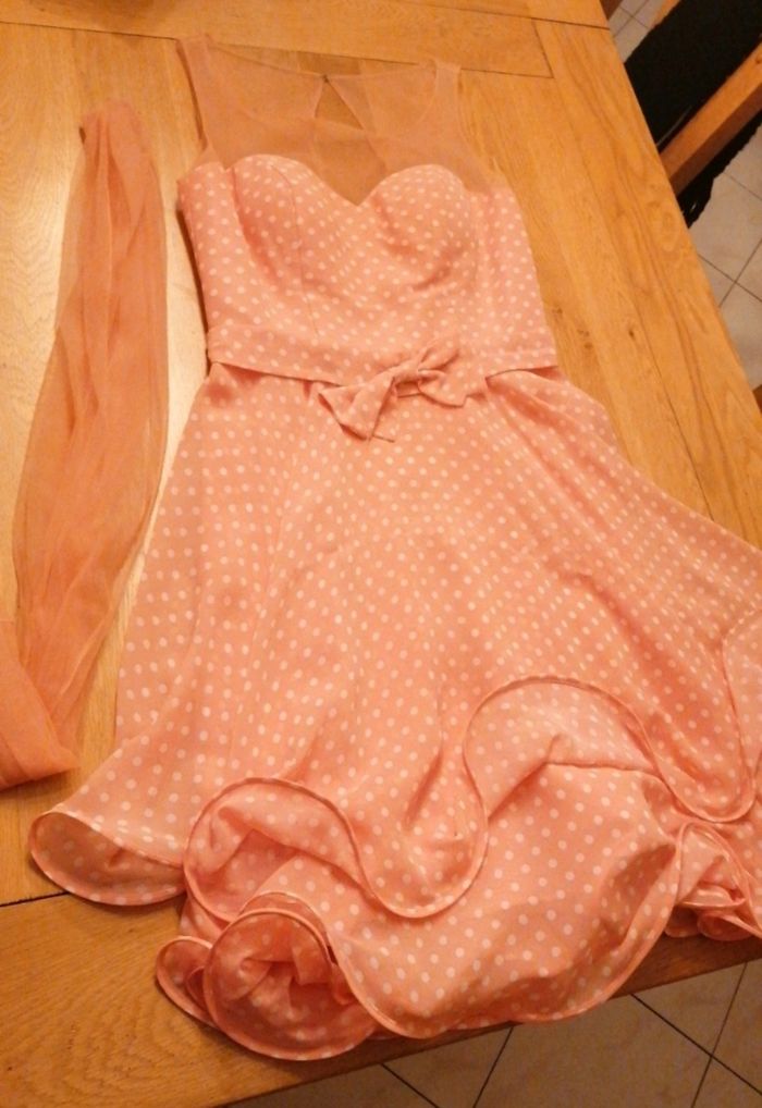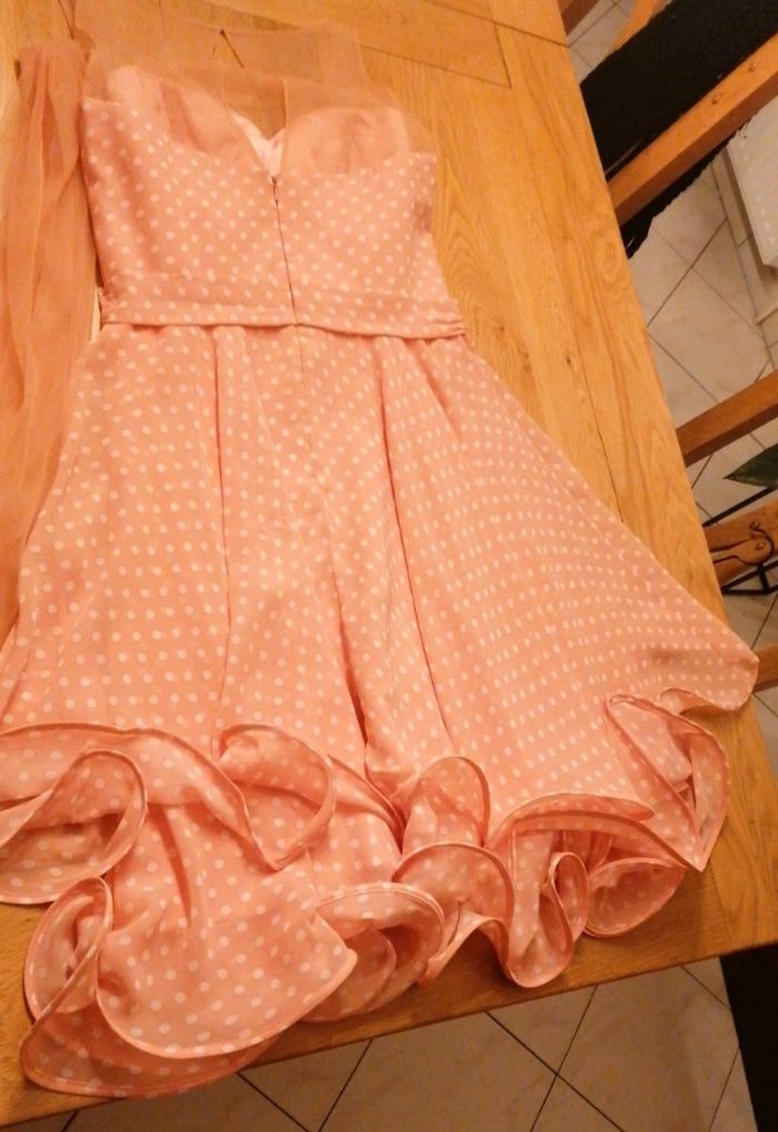 Robe vintage volante voilage épaule avec son étole ouverture fermeture dos. Petit fil de tiré voir photo. Taille indiqué 38 mais correspond à du 36.autre
