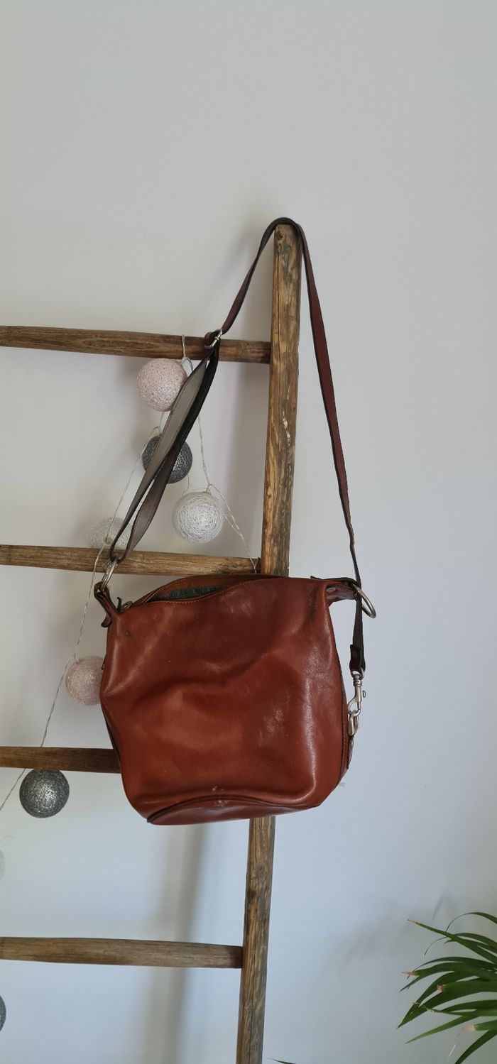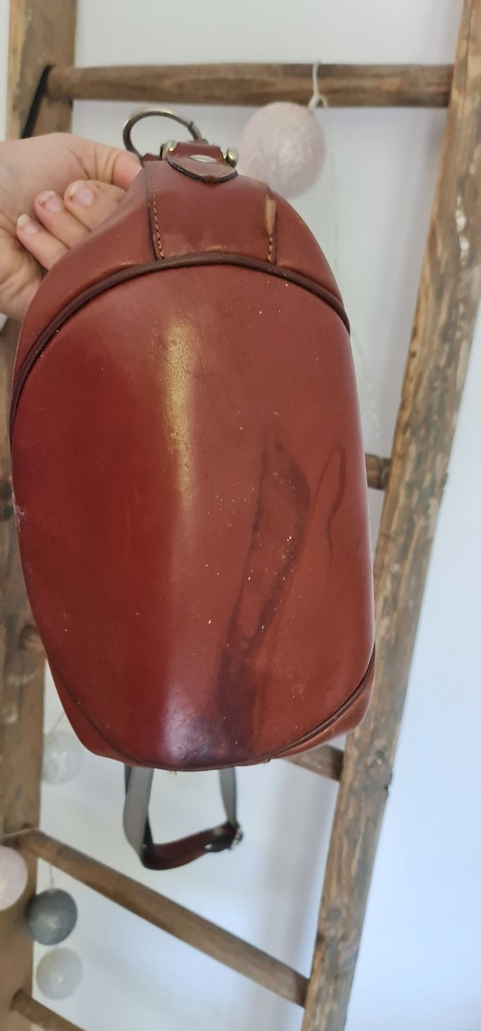 Véritable sac en cuir marron Vintage Katana Très bon état : il y a une auréole de cuir sur le dessous qui y était à l'achat c'est le cuir qui est ainsi