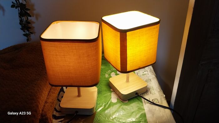 Lot de 2 lampes de chevets sur l'une petite traces sur l'abat jour voir photos. Vendu sans 💡 💡.