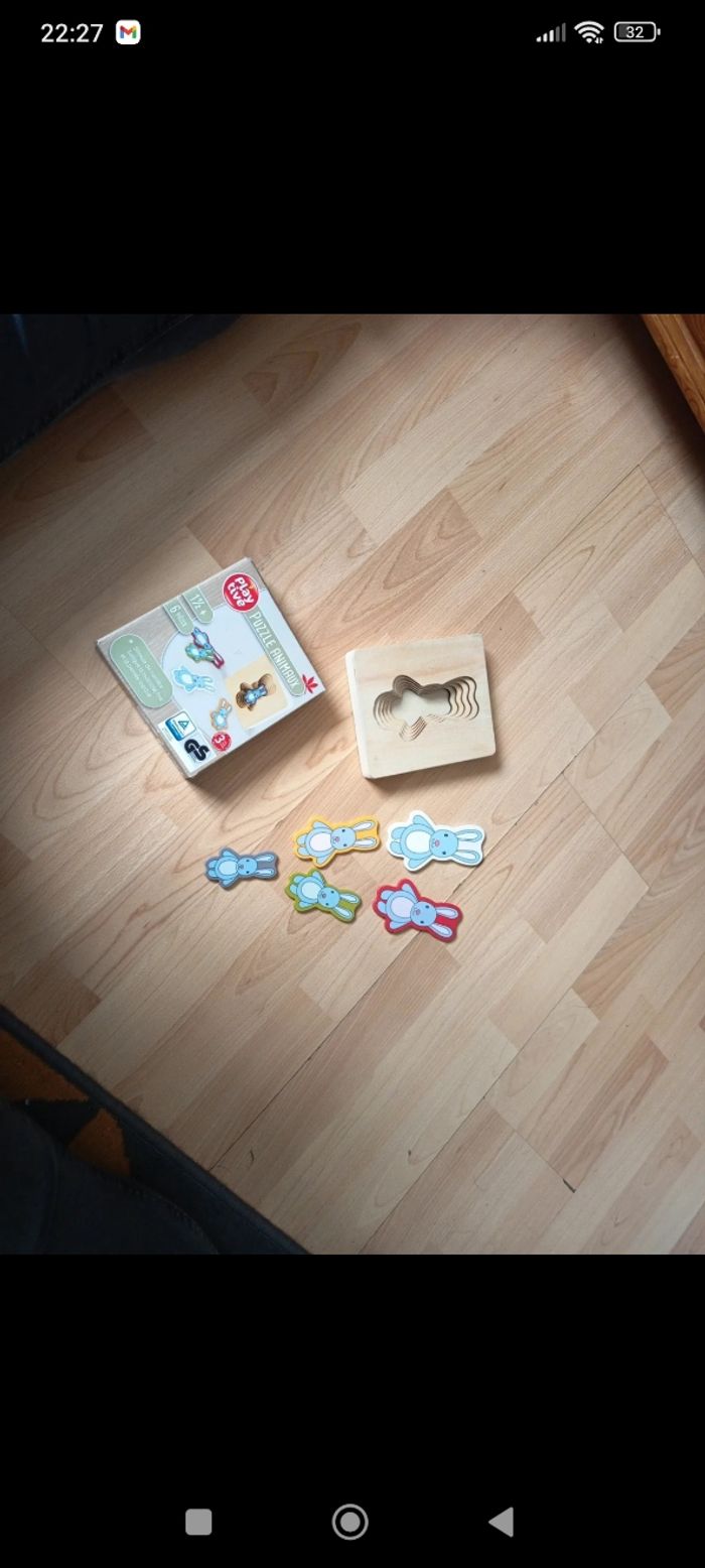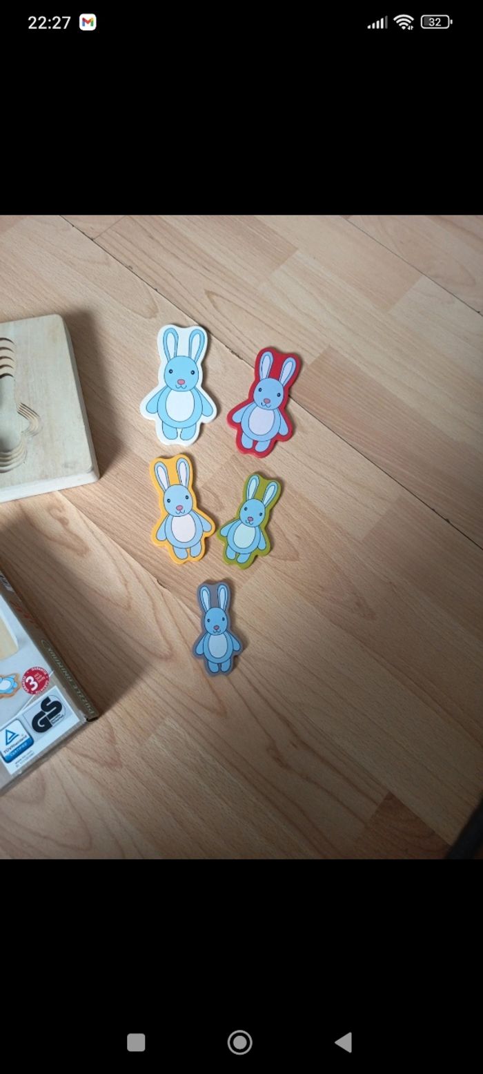 Jeux d'encastrement 5 petits lapins a encastrer dans la boîte du plus petit au plus grand En très bon état, quelques traces d'usure normales
