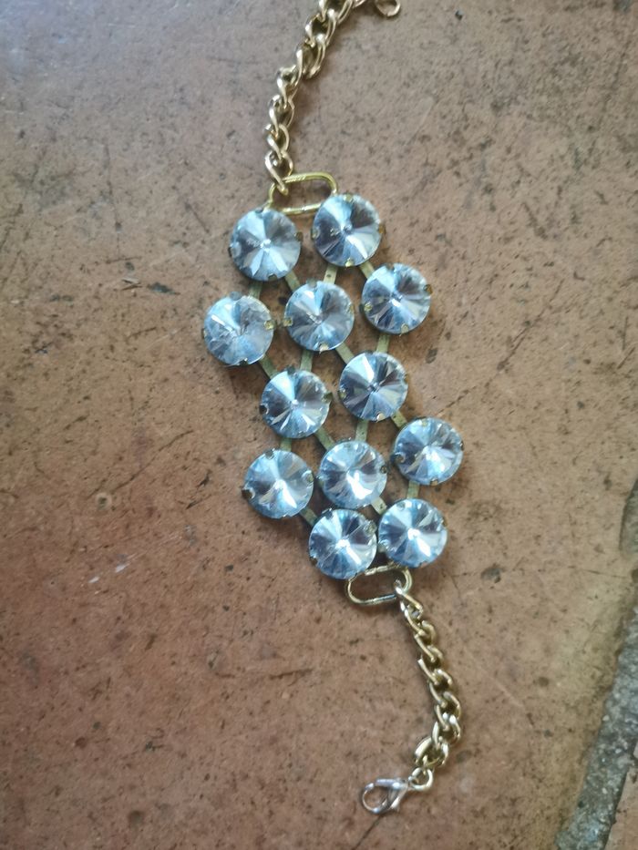 Bracelet doré à gros strass - photo numéro 1