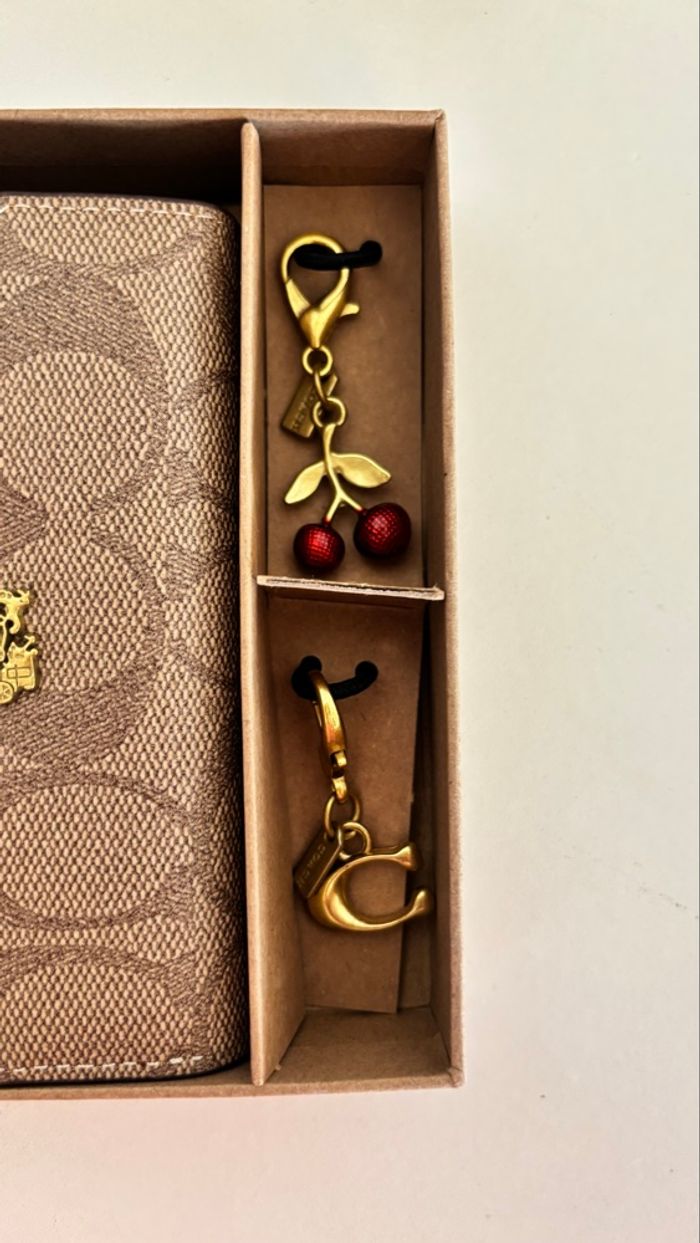 -Portefeuille Coach Beige •En excellent état -Livré avec sa boîte et ses deux pendentifs -Expédition rapide (24/48h) DÉTAILS Largeur:13 cm Hauteur: 9cm