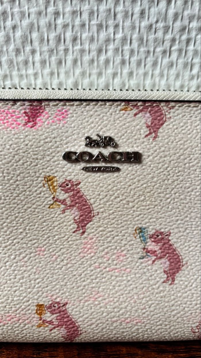 -Portefeuille Coach Rose poudré/ motif porcelets •En excellent état -Expédition rapide (24/48h) Hauteur:11cm Longueur: 20 cm