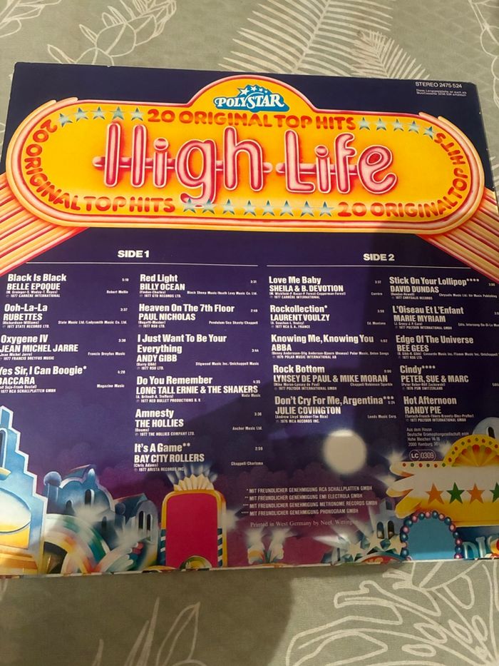 Je vends ce vinyle compilation "High Life" de la collection Polystar. - Type de produit : Vinyle - Titre : High Life - Format : Compilation 33 tours 20 titres en anglais Très bon état. N'hésitez pas à me contacter pour plus d'informations ! Envoi rapide