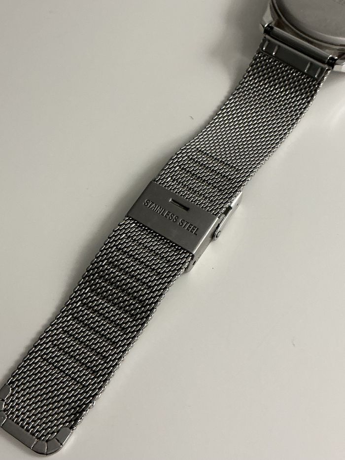 Montre Quantième en acier inoxydable avec bracelet maille milanaise, type : analogique Cadran noir 40mm avec chiffres arabe. Verre minéral, mouvement quartz. Bon état général : micro-rayures visibles sur le boîtier et le bracelet liées à l’usage, verre en bon état. Montre élégante et confortable, idéale au quotidien. L'envoi ce fait sous 24h