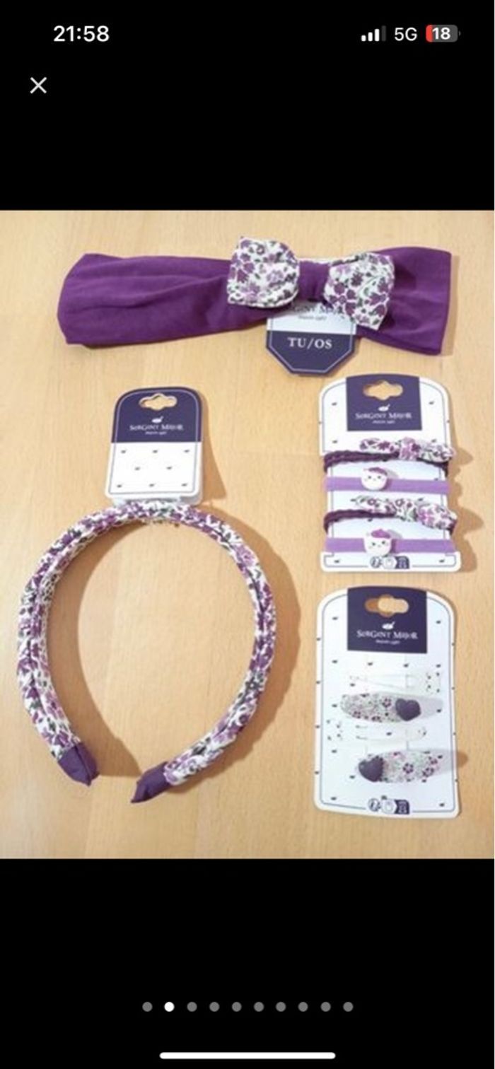 + 1 serre-tête, 1 lot de 4 barrettes, 1 lot de 4 élastiques, tous neufs et étiquetés 🏷