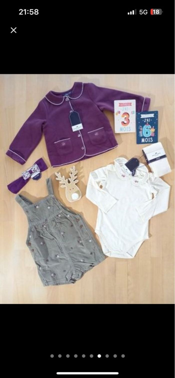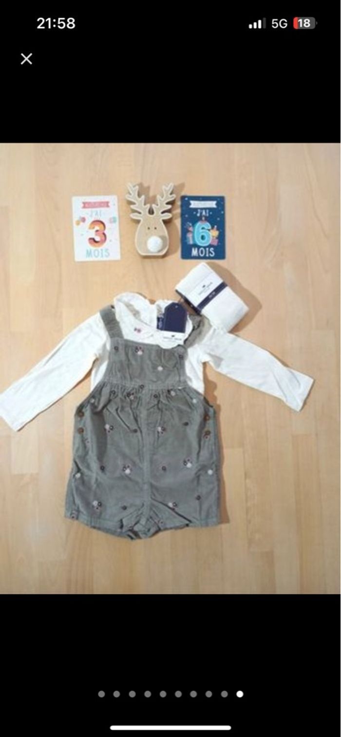 - un ensemble 3 pièces neuf: body écru + salopette courte kaki + une paire de collants écrus (seul le body est étiqueté les 3 pièces étant vendues ensembles) 🏷