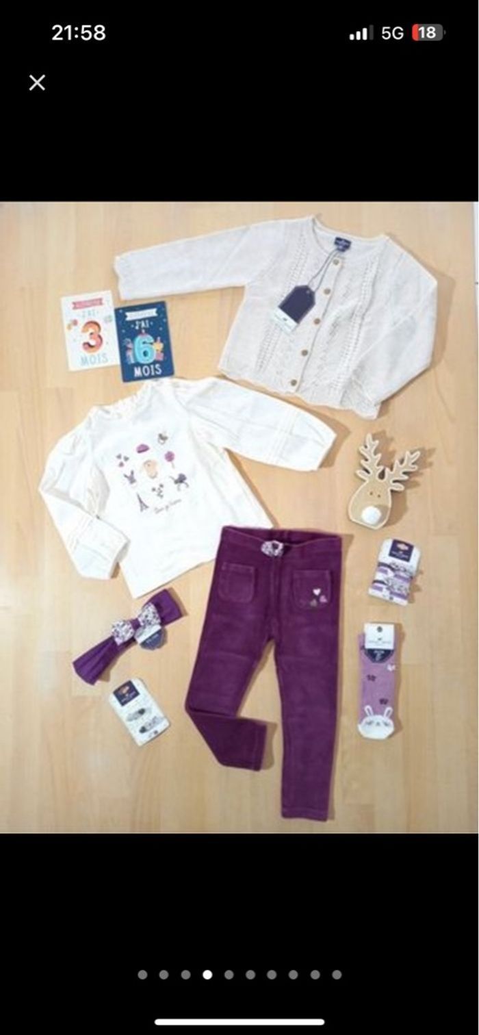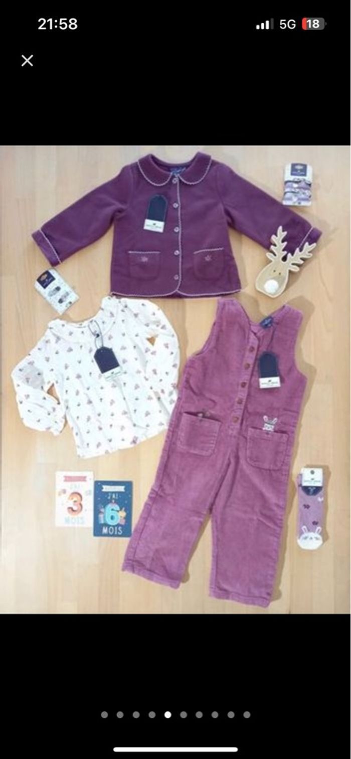 Toutes les pièces de ce lot sont en 36 mois, 92 cm, sauf le pantalon en velours qui taille grand (en 24 mois).