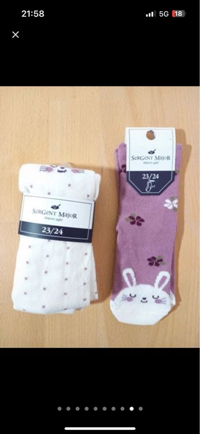 - une paire de chaussettes rose avec lapin pointure 23/24, étiquetées 🏷