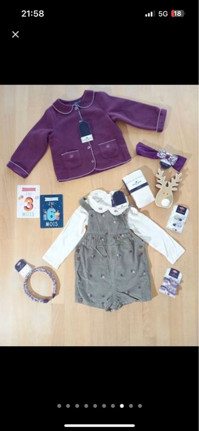 - une salopette en velours, broderie lapin caché dans la poche, étiquetée 🏷