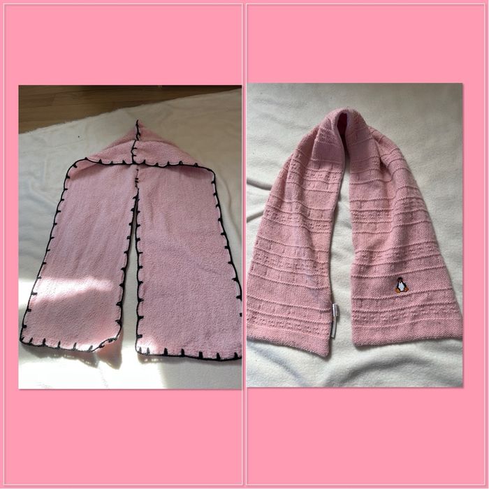Vends ces 2 écharpes: - L’une est de Couleur rose claire Matière en laine d’un côté et coton de l’autre marque ISOTONER très chaude pour filles petit pingouin sur un côté longueur 92 cm - l’autre est ce bonnet-Écharpe Couleur rose claire et noire type matière éponge longueur de chaque pan 74 cm par 24 cm 1,5 euro Mes autres annonces De vêtements ou accessoires pour fille de 1 à 5 ans #lma42accessoire #lma42fille1 #lma42fille2 #lma42fille3 #lma42fille4 #lma42fille5