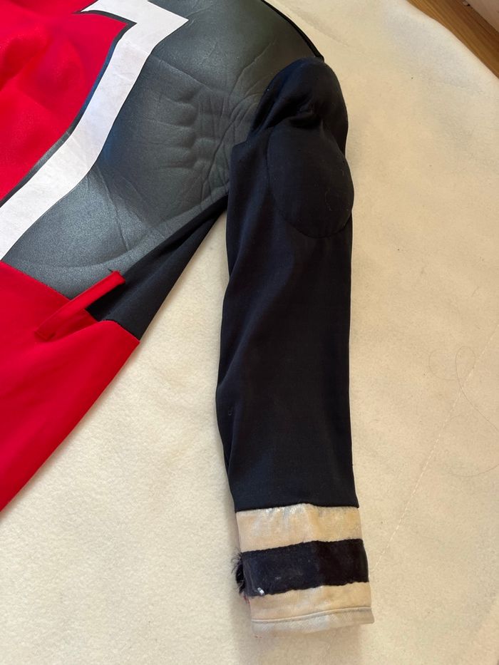 Vends ce déguisement pour garçon Combinaison avec effet super-héros biscottos ou muscles intégrés et Torse en mousse pour plus d’effet gonflé combinaison de couleur rouge et noir pas d’étiquette de taille mais correspond à du 8 ans demi largeur à la taille 39 cm longueur total 104 cm longueur épaule fesses 60 cm longueur entre jambes bas 51 cm se ferme par un scratch en haut dans le cou quelques taches sur les fesses et un peu éfilé sur le genou droit Parfait pour carnaval 5 euros Mes autres annonces De vêtements ou accessoires ou jeu pour garçon de 6 à 8 ans #lma42jeu #lma42garcon6 #lma42garcon7 #lma42garcon8