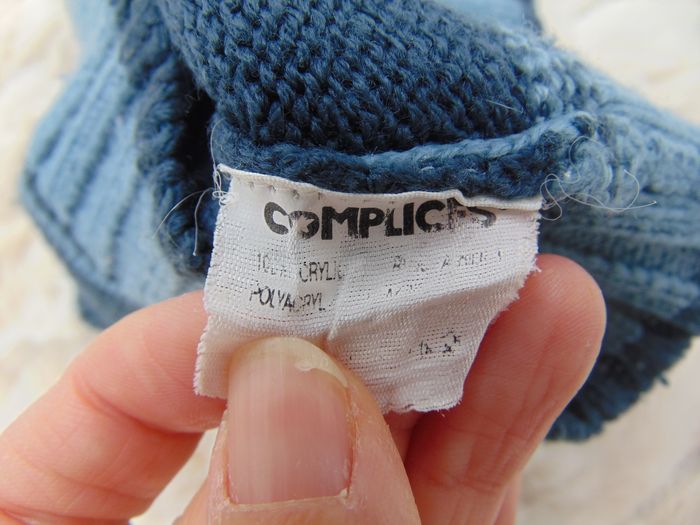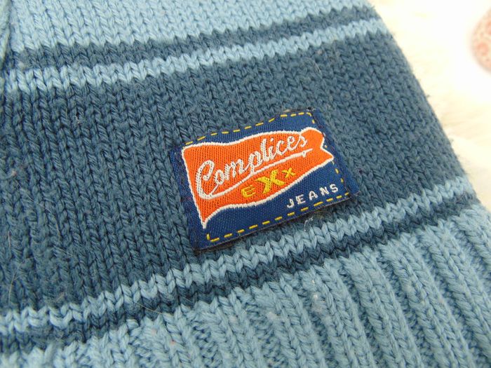 - En mailles - Couleur bleu clair avec une bande bleue foncée - Ecusson orange avec la marque Complices - Aucune tâche ni trou