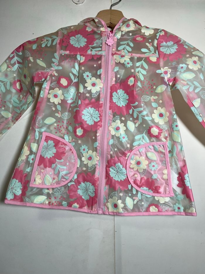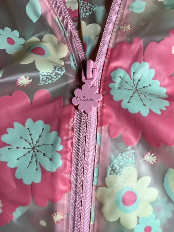 Manteau,veste de pluie imperméable Avec capuche Pour enfant fille Marque orchestra Âge 3 ans (98cm) Longueur 43cm Largeur 30cm Avec motifs fleurs 2 poches devant En bonne état