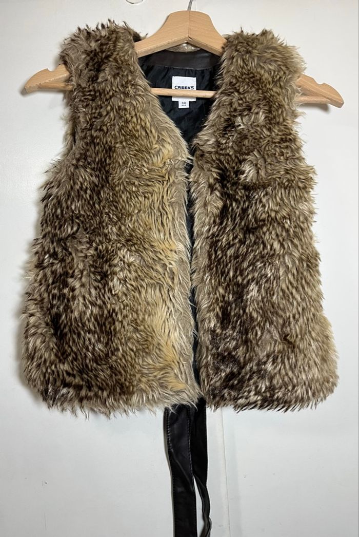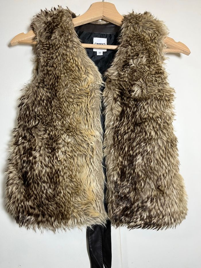 Veste,gilet sans manche En fausse fourrure Pour enfant fille Marque creeks Âge 10 ans Ave. Ruban pour l’attacher Longueur 50cm En bonne état Largeur 40cm