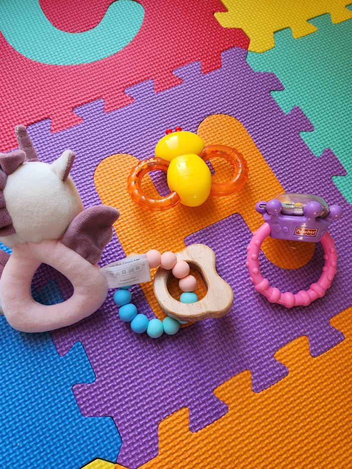 Lots de jouet d'éveil anneaux, hochet,.. Quelques traces d'usure pour certains, d'autre pratiquement neuf.