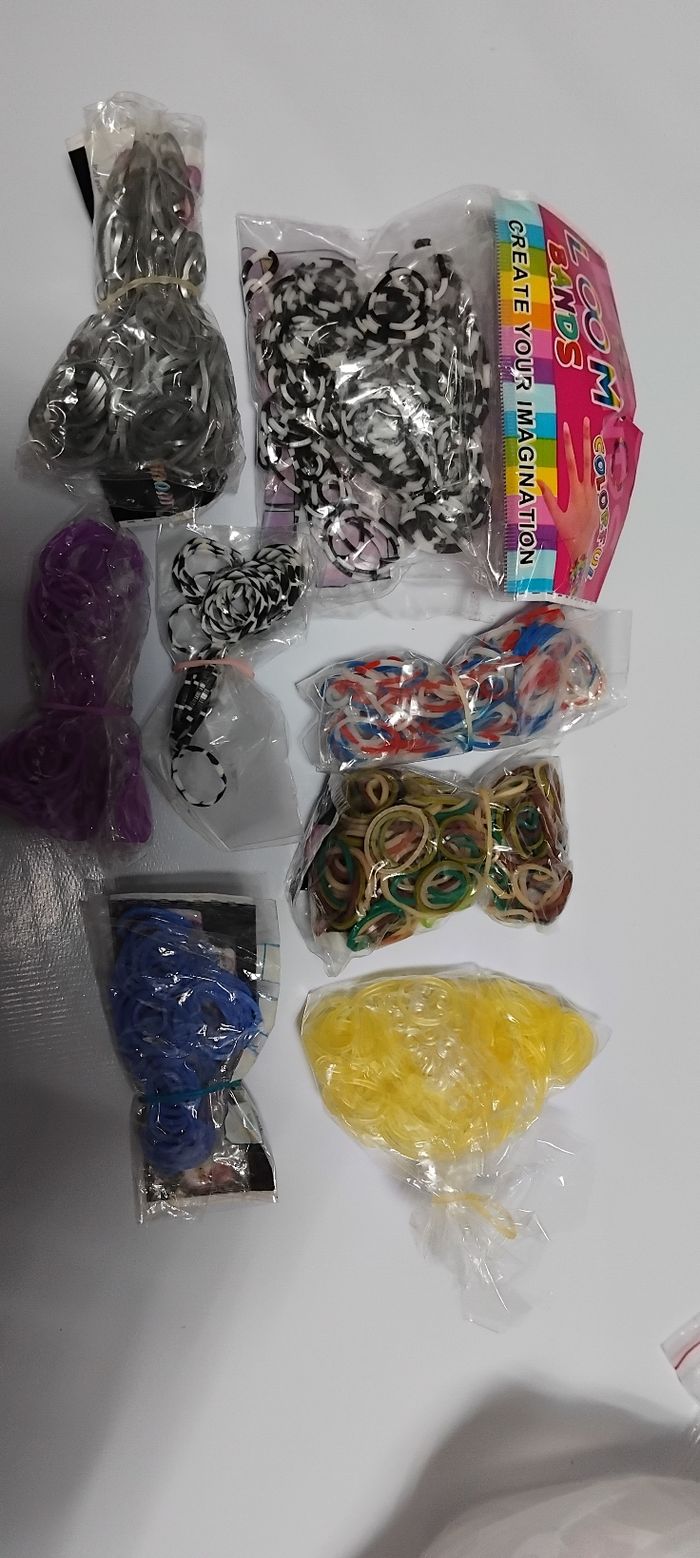 Gros lot kit Élastique et accessoire pour fabriquer vos bracelet bague en Élastique Tout est neuf Il y a de tout 51 crochet, des accessoires , des crochet énormément de paquet pour fermer vos créations TOUTES LES BOÎTES EN PHOTO je donne avrc car jai tout de ranger Énormément de paquet de Élastique Vraiment un kit ensemble complet qui conviendrait bien a une nounou ou a une maîtresse pour occuper tous ces petits élèves