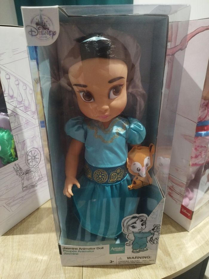 🕌 Poupée Disney Animator – Jasmine (Disney Store) 📦 Neuve en boîte, jamais ouverte 🐯 Rajah (tigre) accessoire inclus ✨ État : très bon, boîte légèrement marquée sur les coins ⚠️ Anti-fraude : je filme à chaque étape : 🎥 état avant emballage