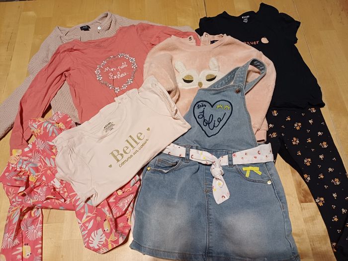Lot vêtements fille taille 24 mois Un pull chouette Un gilet rose 3 t shirts 4 leggings 1 jupe à bretelles 1 haut anti UV
