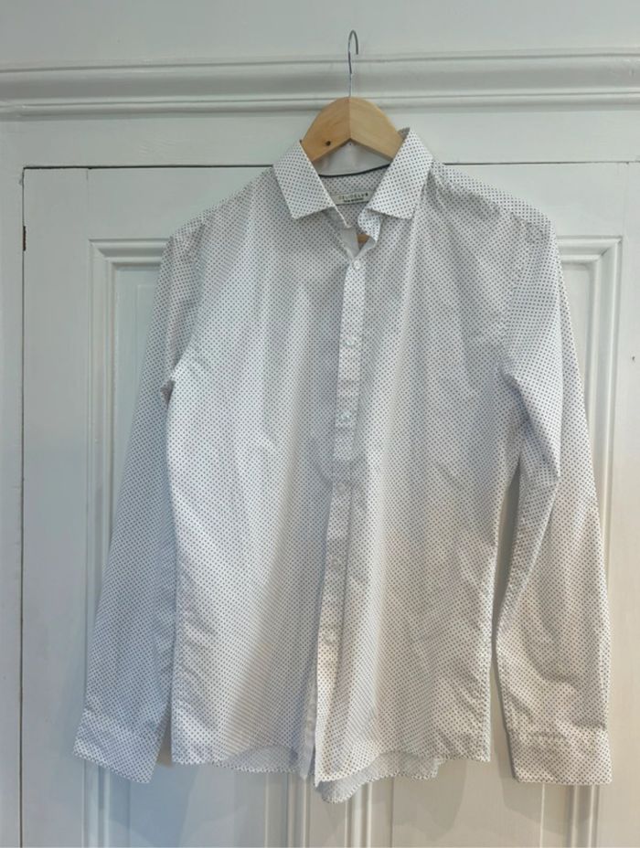 Chemise blanche à pois noir, très bon état porté 1 fois