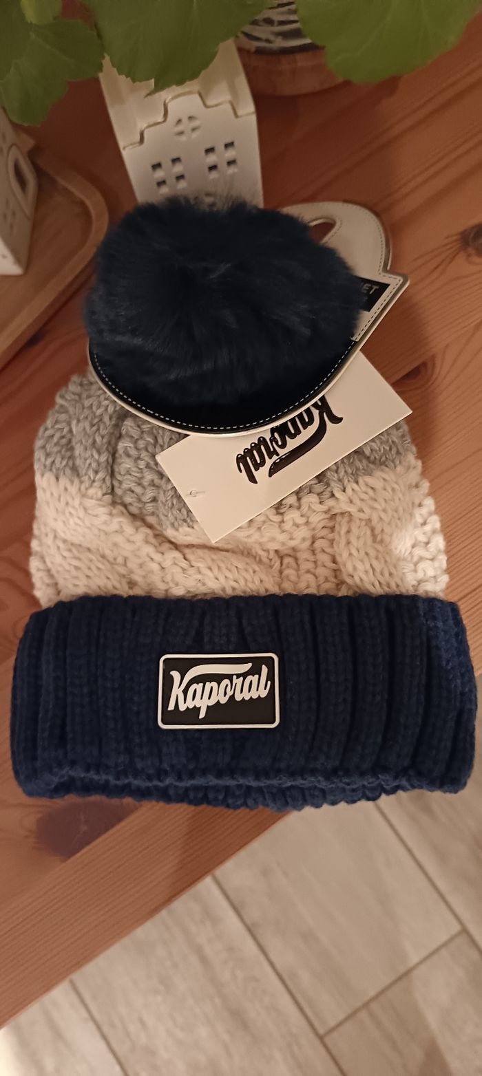 📌 Bonnet tricolore à pompon bleu foncé de la marque Kaporal. 💵 18 euros (Prix d'origine de 45 € visible sur les photos) 📦 Envoi rapide dans son emballage d'origine ✅ Taille unique