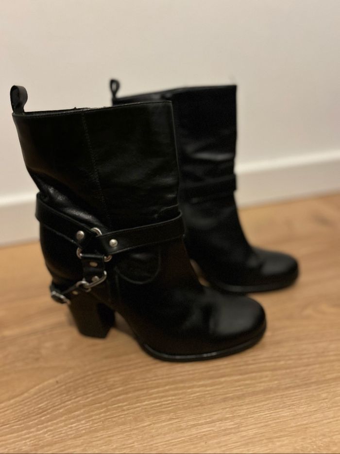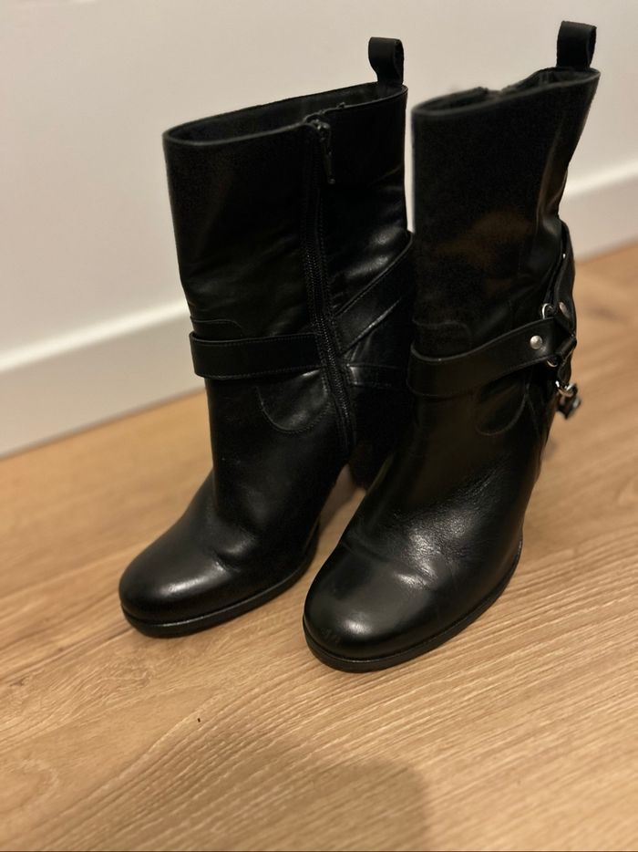 Bottines à talons Très bon état Porté 1 fois Hauteur talons : 10cm Hauteur avec chaussette : 24 cm Achète 75€ - vendu sans la boîte Suite grossesse changement de pointure