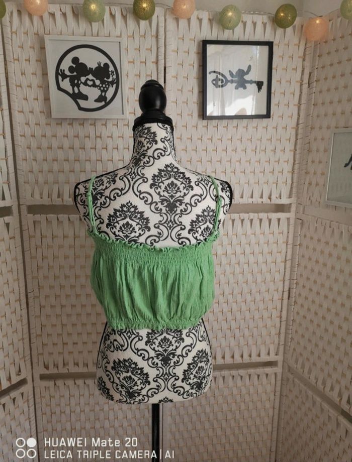 💕Joli Débardeur crop top court ROXY vert citron à smocks - Taille L/ 40 💕