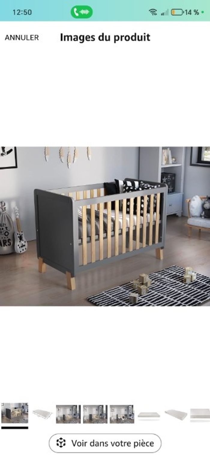 Lit évolutif et réglable en hauteur Taille du matelas 60*120 Vendu sans le matelas