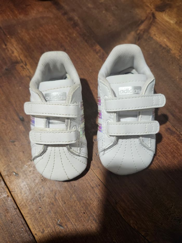 Chaussures bébé Adidas Superstar en très bon état. Taille 17.