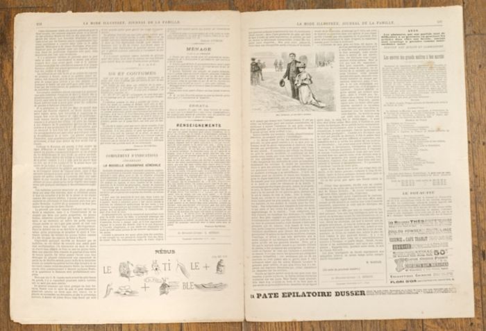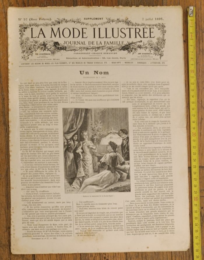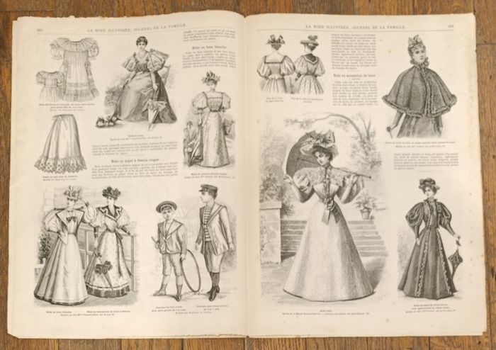 Rare Ancien journal supplément La mode illustrée 7 juillet 1895 N°27 Avec patron Quelques traces d'usure au vu de l'âge : - Tranche un peu déchirée - Extrémités des pages effritées, usées - Petites déchirures - Quelques tâches rousses Cf photos Journal de la famille Contenant les dessins de modes les plus élégants et des modèles de travaux d'aiguilles... Beaux arts, nouvelles, chroniques, littérature... D'autres journaux la mode illustrée disponibles dont certains avec patrons ainsi que d'anciens magazines et articles vintage, N'hésitez pas à regarder mes autres annonces