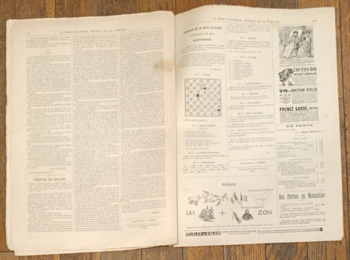 Rare Ancien journal supplément La mode illustrée 2 mai 1897 N°18 Avec patron Quelques traces d'usure au vu de l'âge : - Tranche un peu déchirée - Extrémités des pages effritées, usées - Petites déchirures - Quelques tâches rousses Cf photos Journal de la famille Contenant les dessins de modes les plus élégants et des modèles de travaux d'aiguilles... Beaux arts, nouvelles, chroniques, littérature... D'autres journaux la mode illustrée disponibles dont certains avec patrons ainsi que d'anciens magazines et articles vintage, N'hésitez pas à regarder mes autres annonces