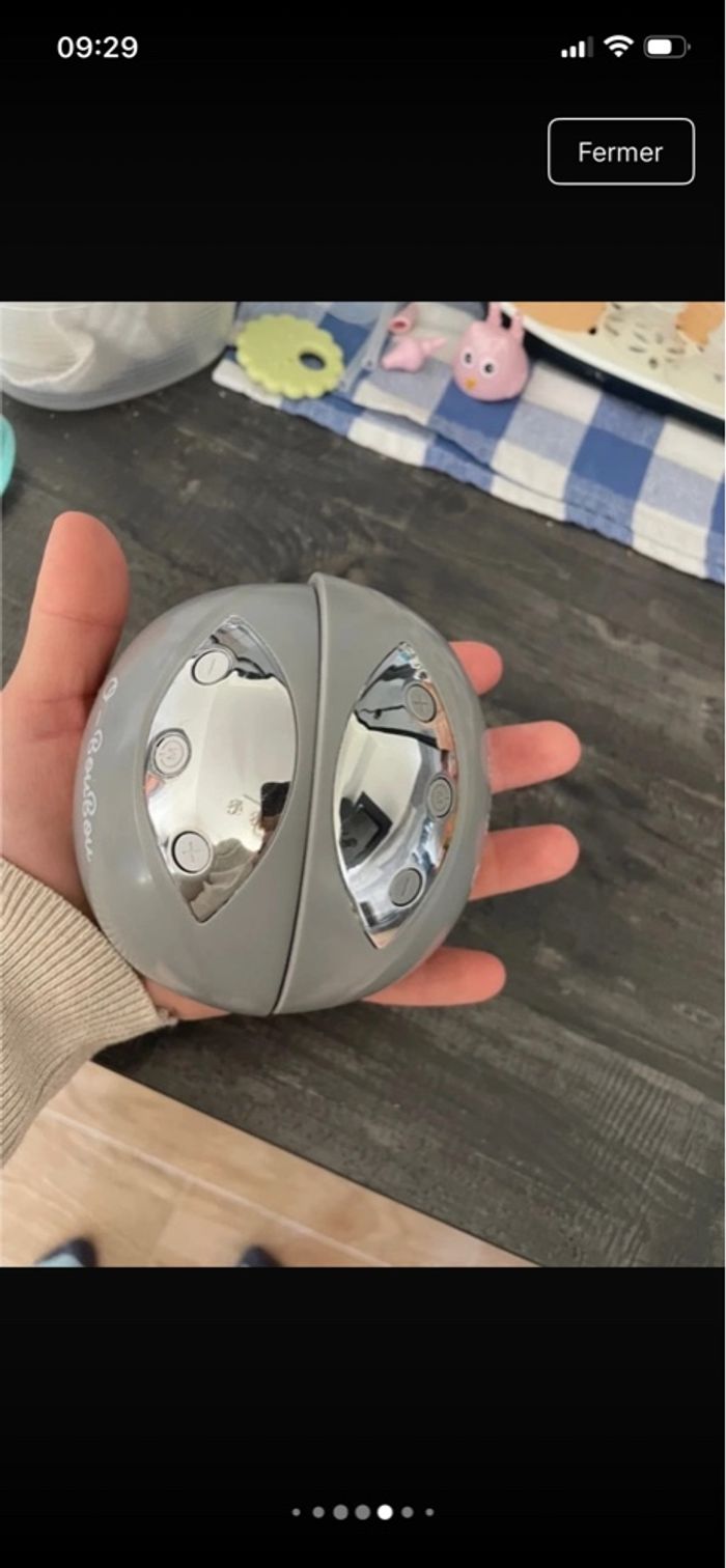 Lot de deux tire lait mobile Attention, celui avec une marque noire ( petit accros qui a fait sauter la peinture), doit avoir sa batterie qui est un peu plus faible , mais fonctionne encore L'autre est niquel Vendu sans prise secteur Utilisé 3 mois et demi car fin de l'allaitement