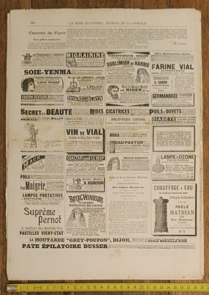 Rare Ancien journal supplément La mode illustrée 14 novembre 1897 N°46 Avec patron Traces d'usure au vu de l'âge : - Tranche déchirée - Extrémités des pages effritées, usées - Déchirures - Quelques tâches rousses Cf photos Journal de la famille Contenant les dessins de modes les plus élégants et des modèles de travaux d'aiguilles... Beaux arts, nouvelles, chroniques, littérature... D'autres journaux la mode illustrée disponibles dont certains avec patrons ainsi que d'anciens magazines et articles vintage, N'hésitez pas à regarder mes autres annonces