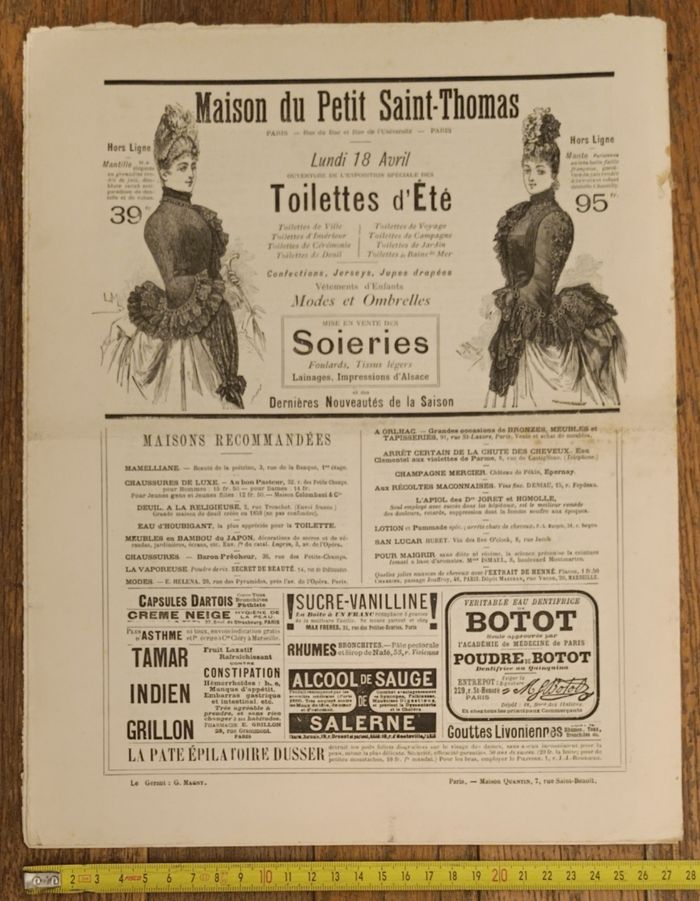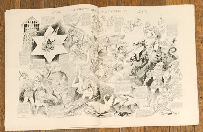 Rare Ancien journal La vie parisienne 16 avril 1887 N°16 Traces d'usure au vu de l'âge : - Tranche un peu usée - Extrémités des pages effritées, usées - petites déchirures - Quelques tâches rousses Cf photos Revue fondée par Marcellin "Moeurs élégantes, Choses du jour, Fantaisies, Voyages, Théâtres, Musique, Mode Superbe double page centrale illustrée par Bac sur la féerie "La Chatte Blanche" au Théâtre du Châtelet Publicité de la maison du Petit Saint Thomas (Célèbre magasin qui a inspiré Zola) De nombreuses anciennes revues et articles vintage disponibles, N'hésitez pas à regarder mes autres annonces