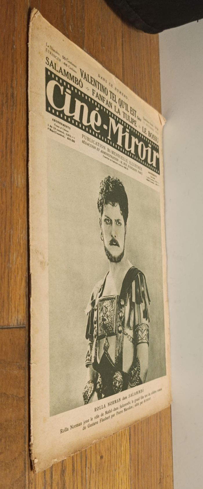 Rare Ancienne revue Ciné-miroir N°84 Quatrième année 15 octobre 1925 Couverture : Rolla Norman dans Salammbô Dos de couverture : Jeanne De Balzac dans Salammbô Traces d'usure : - Tranche usée, partiellement déchirée - Bas des pages déchirées, effritées - Traces de pliures - Tâches rousses Cf photos Au sommaire de ce numéro : - les actualités du cinéma - Arlette Marchal - Fanfan la tulipe - Les frères Zemganno - Salammbô d'après le roman de Gustave Flaubert - Le Bossu Gaston Jacquet - "Notre Opéra reconstitué à Universal City" De nombreux anciens magazines et articles vintage disponibles, N'hésitez pas à regarder mes autres annonces