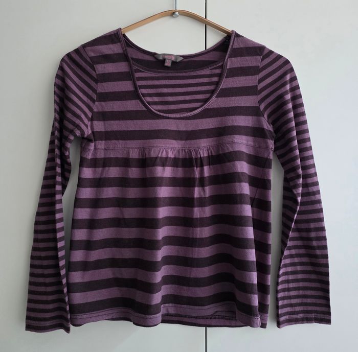 T-shirt de marque B-Unity, manches longues, taille 10 ans, 60% coton, 40% viscose. Rayé violet / violet foncé.