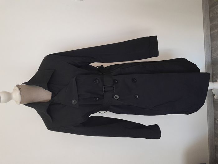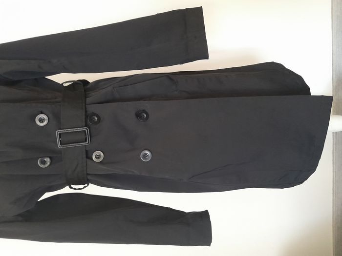 Manteau, 2 poche, fendu derrière, attache bouton + ceinture Longueur : 95cm, fente : 30cm Aiss / Aiss : 54cm Matière : 70 % Polyester, 27 % Coton, 3 % Spandex Marque : Emily