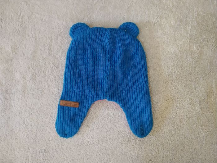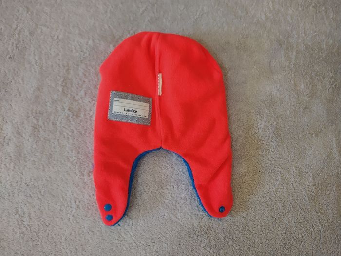 ⚠️ envoi à partir de 5€ d'achat⚠️ Bonnet Ourson bleu marque: Wed'ze taille: 12/18 mois extérieur tricoté (polyester ?) bleu avec visage de ourson souriant et oreilles, intérieur en polaire orange fluo, bonnet couvrant les oreilles et fermeture par bouton pression, quelques bouloches sur l'extérieur, Bon état ⚠️ envoi à partir de 5€ d'achat⚠️