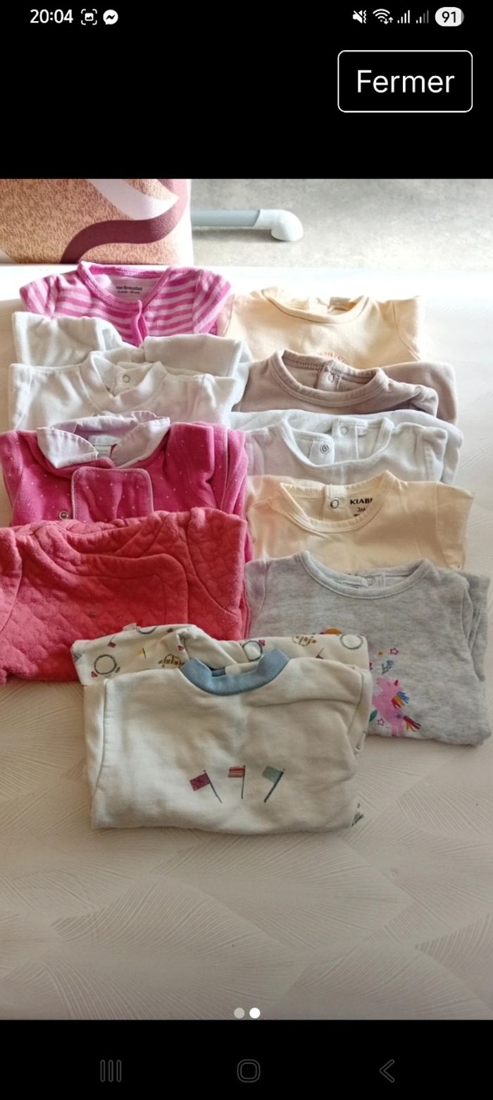 Vend lot plus de 90 pieces En très bon etat Maison non fumeurs sans animaux Printemps/été Ensembles Robes Body Leggings Gilets Pyjama Tee-shirt manches courte Sweat-shirts manches longue Pulls Pantalons De tout...