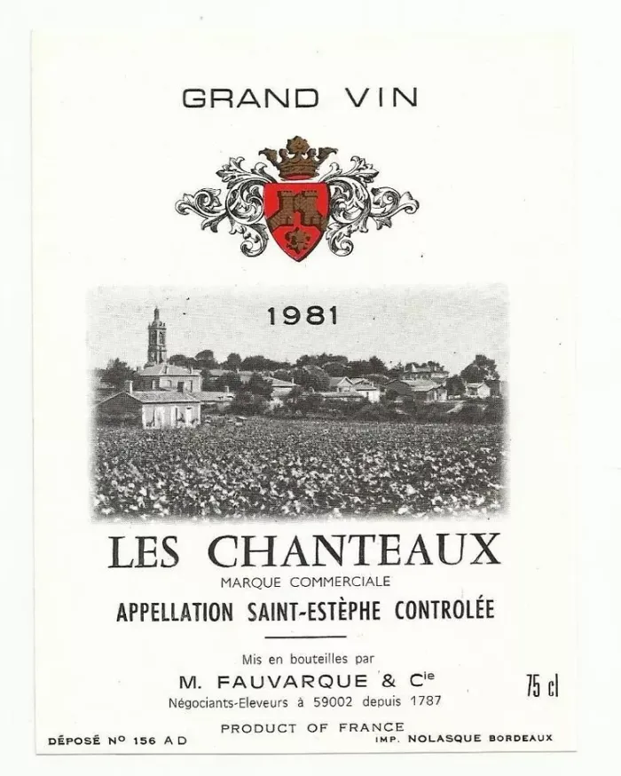 etiquette de vin les chanteaux saint estephe 1981 neuf -